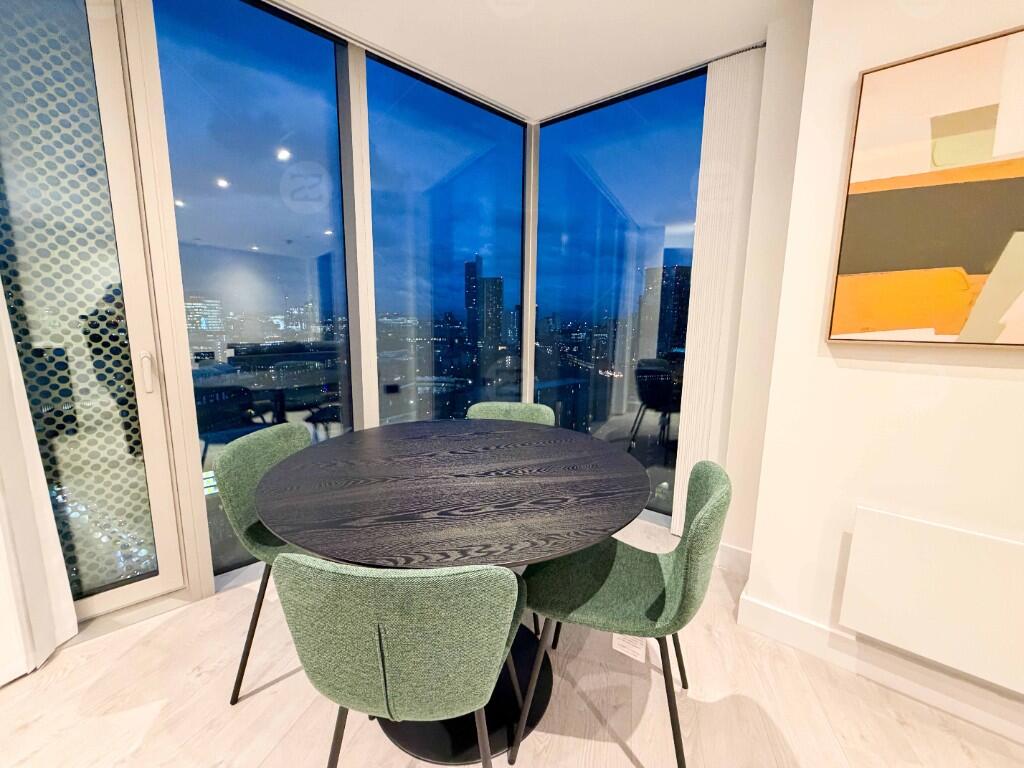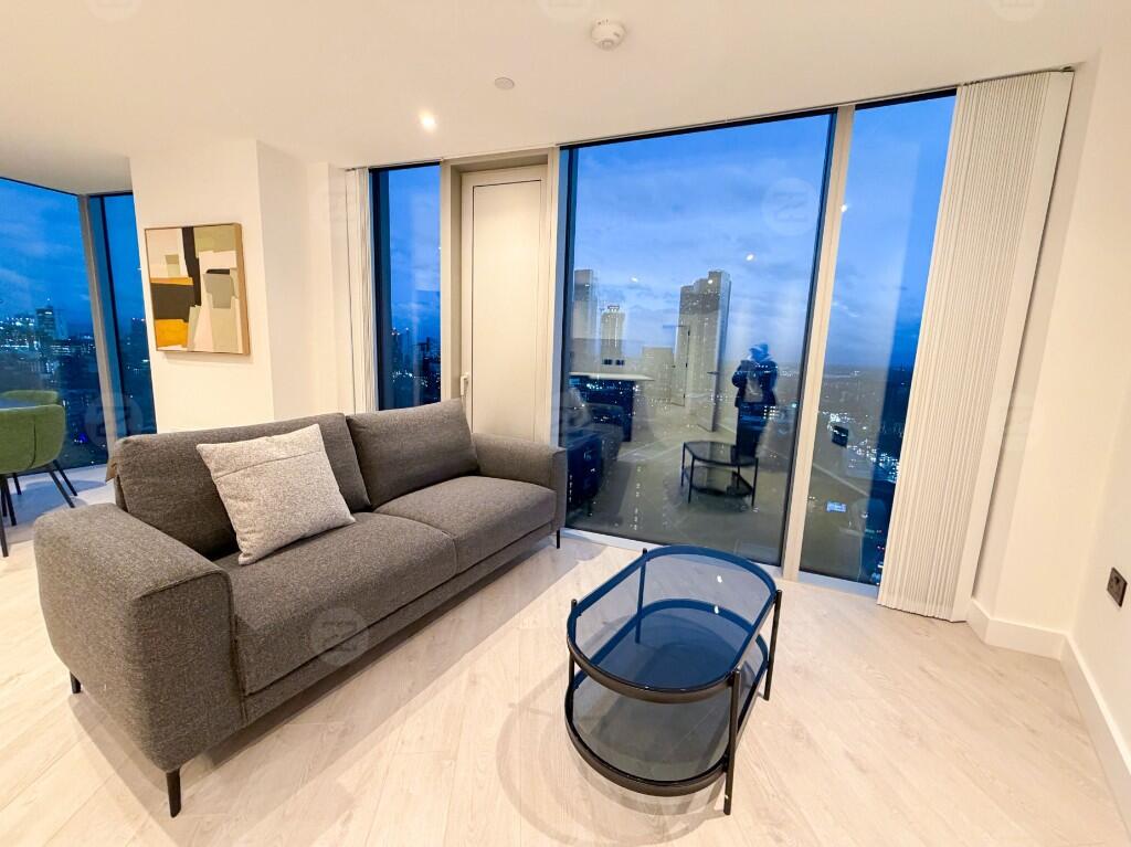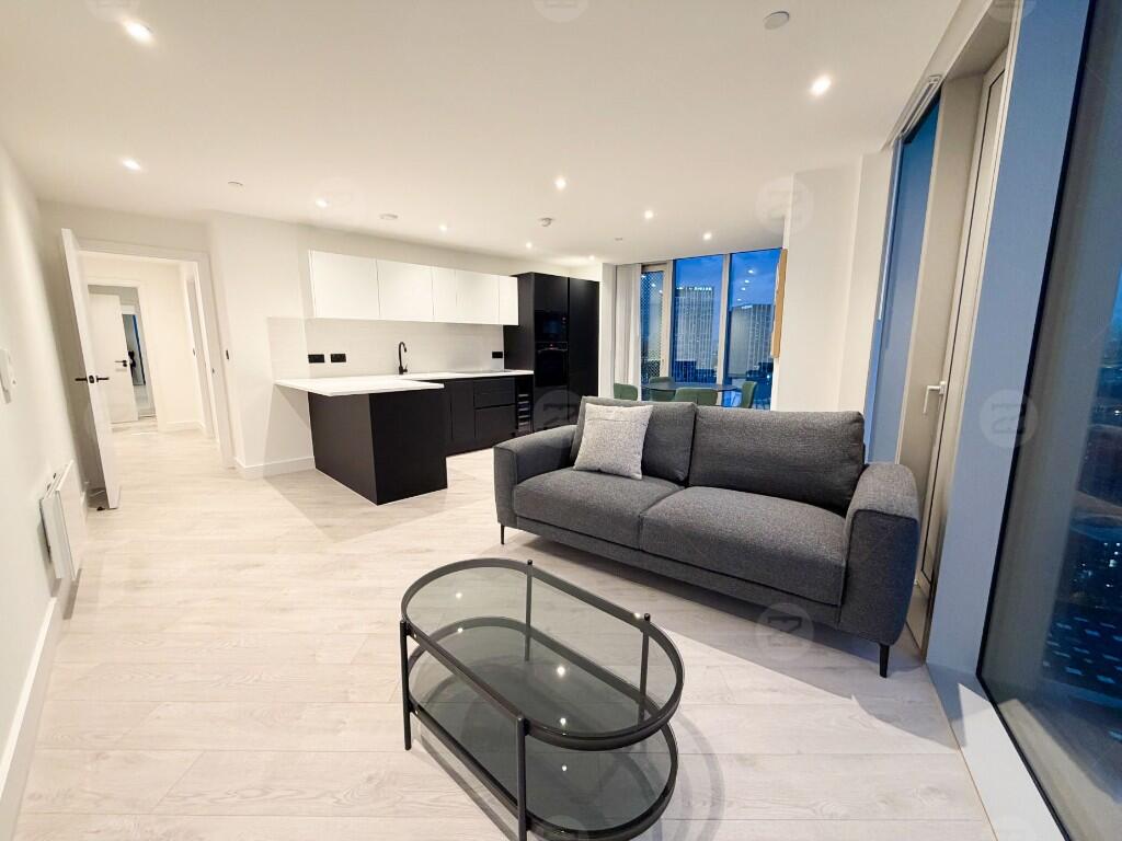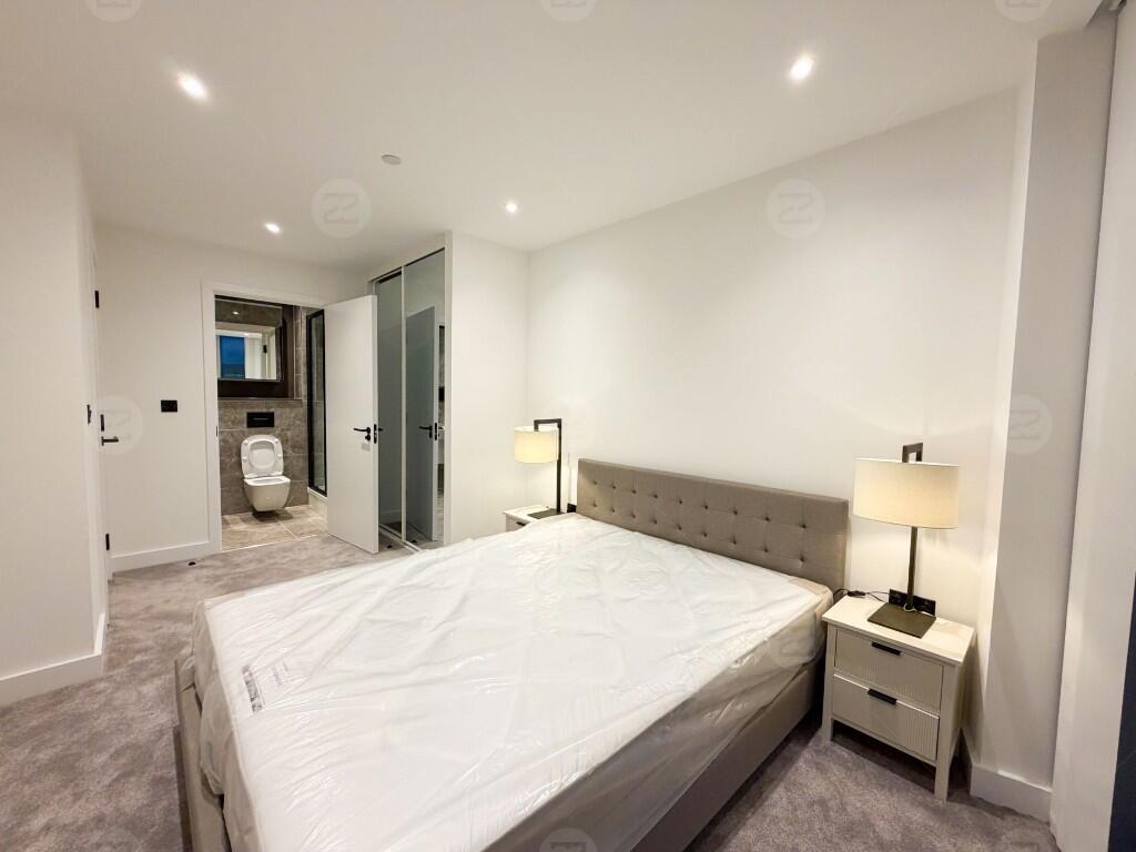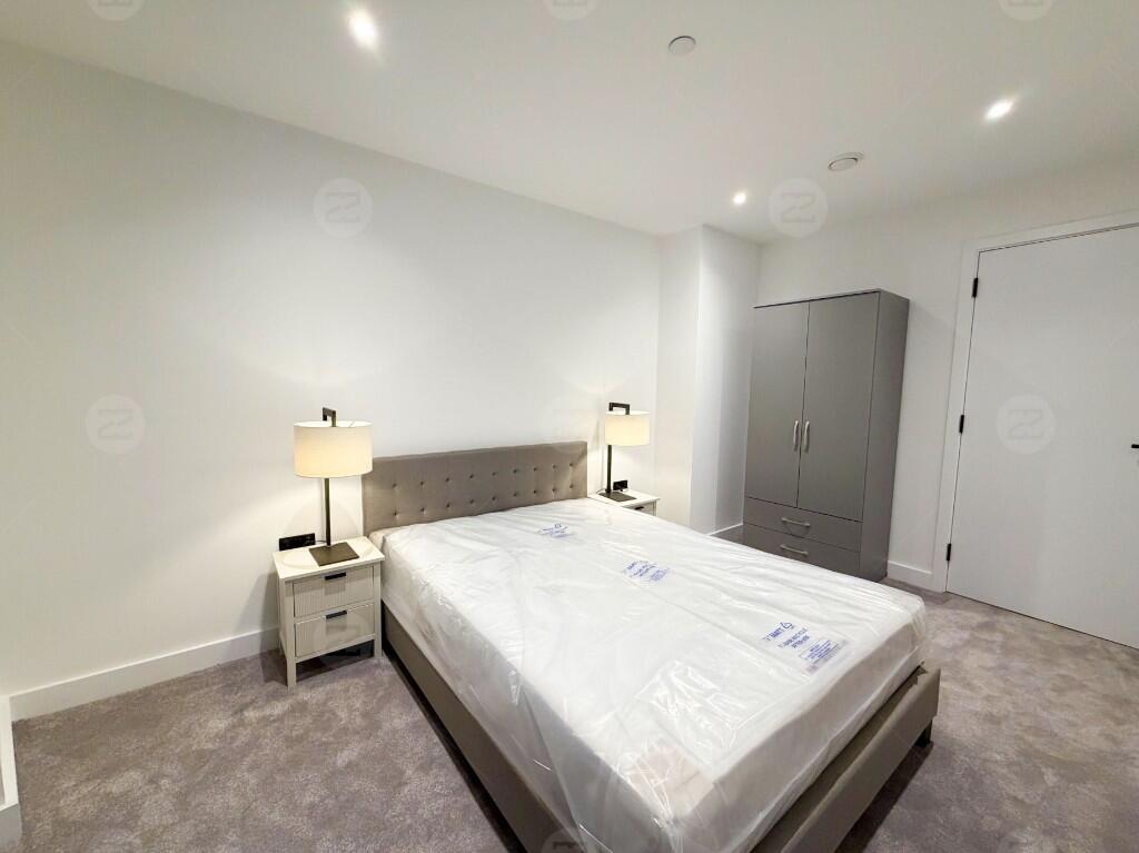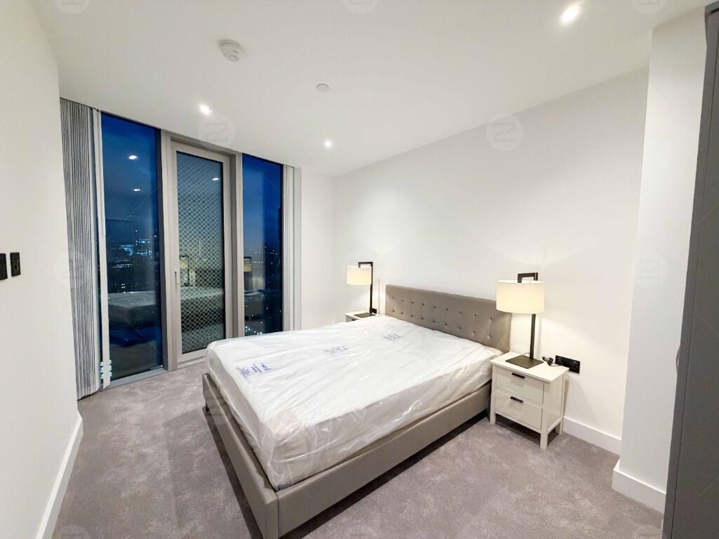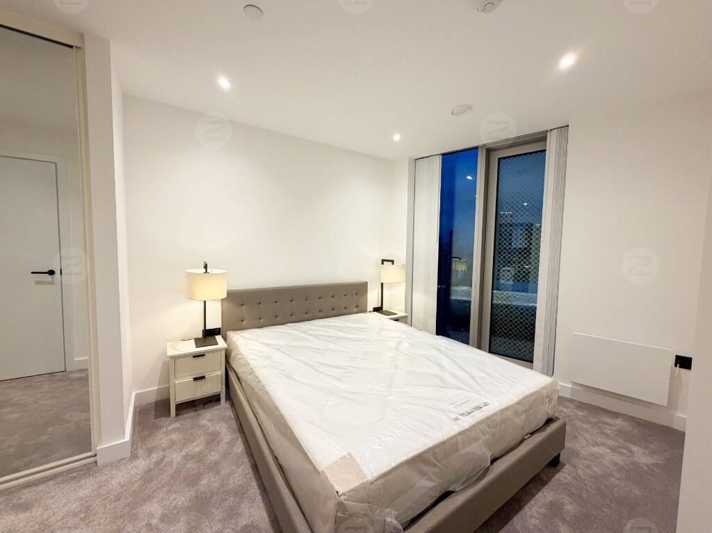 This unit is a spacious corner layout with an exceptionally large living area, providing excellent natural light and attractive open views. The kitchen comes with high-spec integrated appliances, offering a clean and contemporary finish. Both bedrooms are generously sized; the master bedroom can comfortably accommodate a king-size bed and features an en-suite bathroom, a floor-to-ceiling mirror and built-in wardrobes. The second bedroom fits a double bed with ease. The property is offered fully furnished, and a mattress will be provided in the bedroom.