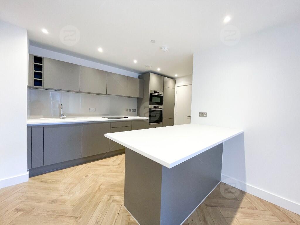 The bright and generous living area provides an ideal space for relaxing or entertaining. The kitchen is thoughtfully designed to feel slightly separate from the main living space, creating a more defined cooking area while still maintaining an open and sociable layout. It features fully integrated appliances and a stylish breakfast bar / island, which can be used both as a convenient dining space and a practical preparation area.
