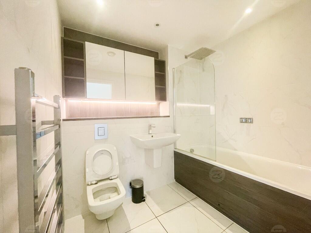 Both bedrooms are generously sized; the master bedroom includes an en-suite bathroom, while the second bedroom benefits from access to a separate private bathroom.