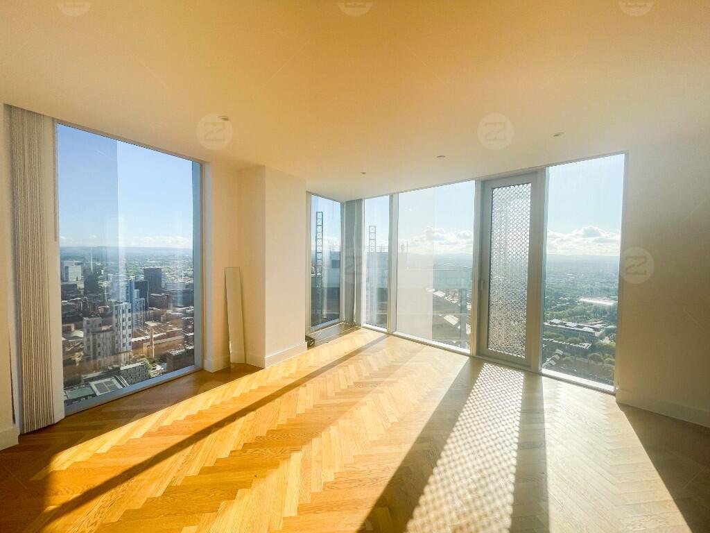 Located in one of Manchester’s most prestigious developments, Deansgate Square, this exceptional two-bedroom, two-bathroom corner apartment on the 52nd floor offers luxury city living at its finest.