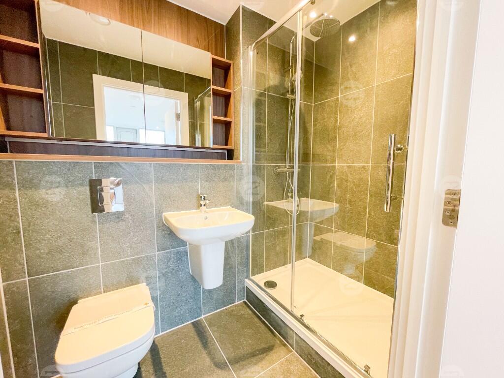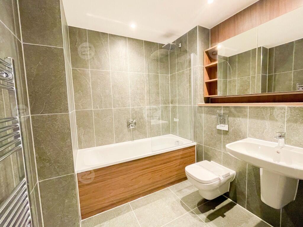 Both bedrooms are well-proportioned doubles. The principal bedroom benefits from a private en-suite bathroom, while the second bedroom has access to its own separate bathroom, offering practicality and comfort for couples, young families or professional sharers. The overall layout provides a strong sense of space and functionality, suitable for modern city living.